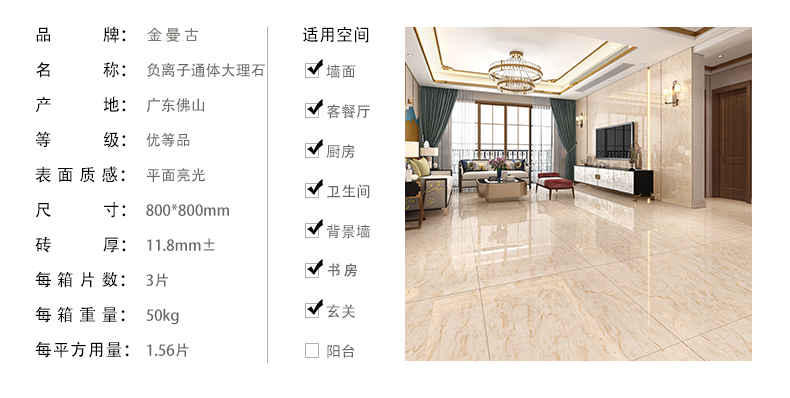 金曼古負離子瓷磚,能持續產生負離子,提高居室內空氣負離子濃度,改善室內空氣質量,提升人體健康水平。負離子被稱為空氣維生素,負離子瓷磚創造安全健康的空間環境。工程用磚全拋釉地磚、通體大理石瓷磚、金剛石地磚等支持加工定做家裝瓷磚批發。