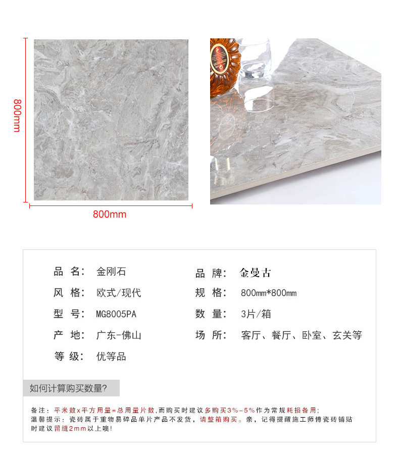 金曼古瓷磚廠家特價金剛石因高品質而得名,是一款極具天然石材效果和微晶石質感的仿石材瓷磚,它不但在價格、環保、耐用和清潔上極具優勢,在質感、規格、花色、重量等指標上,金剛石都遠遠勝于石材、拋光磚。相比其他種類的產品,它最大的特點可以用“高亮度、高耐磨、高平整、高逼真、高清晰、高環保”。