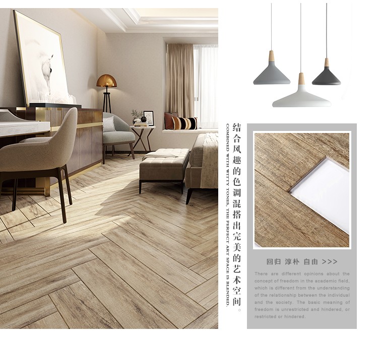 金曼古木紋磚,是一種表面呈現木紋裝飾圖案的環保建材.紋路逼真、自然樸實、沒有木地板褪色、不耐磨等缺點;曼古陶瓷木紋磚系列線條明快,圖案清晰為特色。本身具有阻燃,不腐蝕的特點,綠色、環保型建材;產品使用壽命長,耐磨,無需像木制產品那樣周期性地打蠟保養等.
