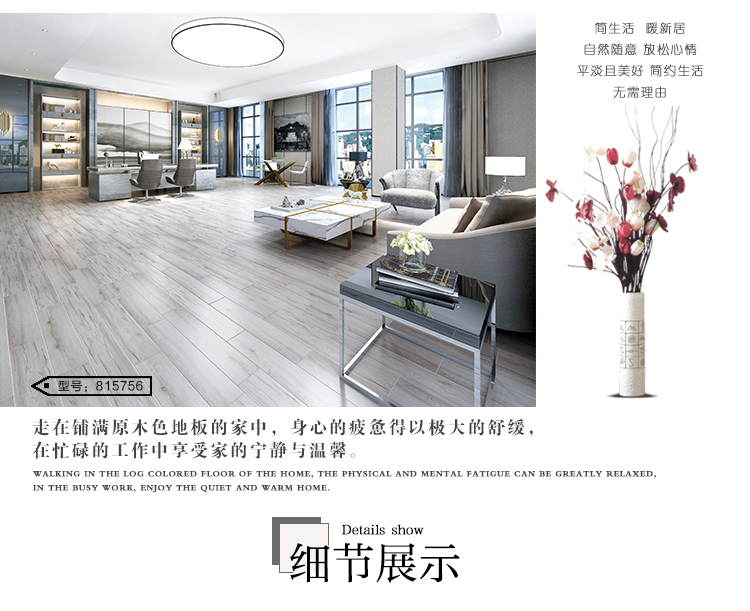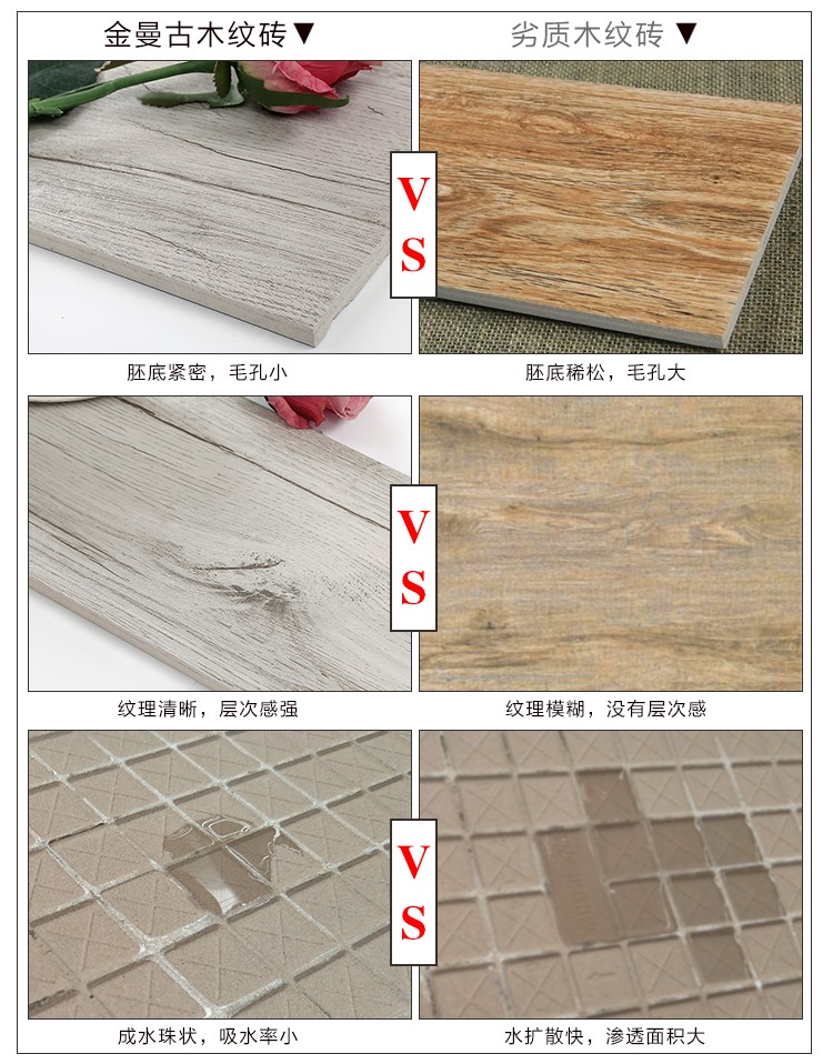 金曼古木紋磚,是一種表面呈現木紋裝飾圖案的環保建材.紋路逼真、自然樸實、沒有木地板褪色、不耐磨等缺點;曼古陶瓷木紋磚系列線條明快,圖案清晰為特色。本身具有阻燃,不腐蝕的特點,綠色、環保型建材;產品使用壽命長,耐磨,無需像木制產品那樣周期性地打蠟保養等.