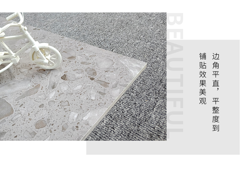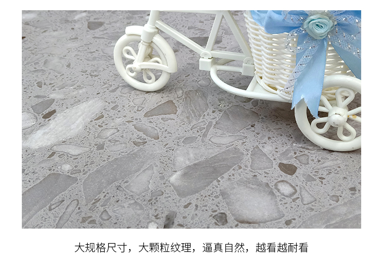大尺寸水磨石防滑耐磨,應(yīng)用于公共場合更具優(yōu)勢,自然簡約的紋理,百搭適用性廣,水磨石里面大顆粒,不規(guī)則的石子花紋,很有不確定的隨機美感。始于顏值/陷于工藝/忠于品質(zhì)!
