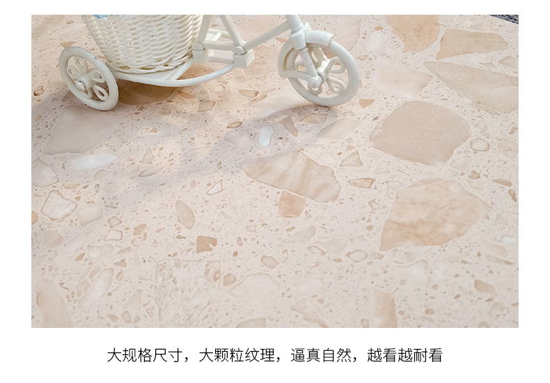 大尺寸水磨石防滑耐磨,應用于公共場合更具優(yōu)勢,自然簡約的紋理,百搭適用性廣,水磨石里面大顆粒,不規(guī)則的石子花紋,很有不確定的隨機美感。始于顏值/陷于工藝/忠于品質(zhì)!