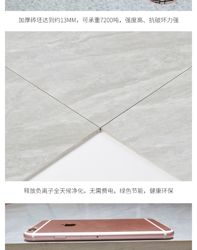 金曼古負離子瓷磚,能持續產生負離子,提高居室內空氣負離子濃度,改善室內空氣質量,提升人體健康水平。負離子被稱為空氣維生素,負離子瓷磚創造安全健康的空間環境。工程用磚全拋釉地磚、通體大理石瓷磚、金剛石地磚等支持加工定做家裝瓷磚批發。