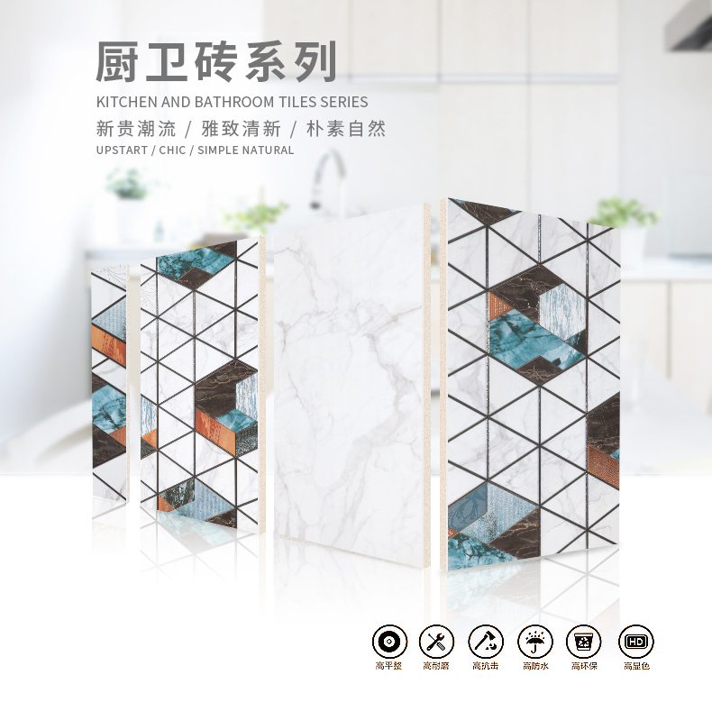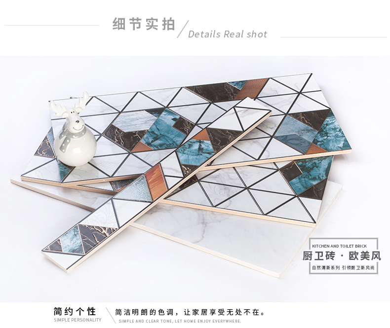 適用于洗手間、廚房、室外陽臺的立面裝飾,是保護(hù)墻面免遭水濺的有效途徑。它們不僅用于墻面,用在門窗的邊緣裝飾上,也是一種有趣的裝飾元素。用于踢腳線處的裝飾墻磚,既美觀又保護(hù)墻基不易被鞋或桌椅凳腳弄臟。