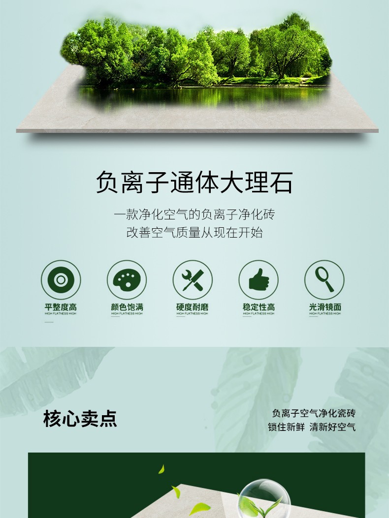 金曼古負離子瓷磚,能持續產生負離子,提高居室內空氣負離子濃度,改善室內空氣質量,提升人體健康水平。負離子被稱為空氣維生素,負離子瓷磚創造安全健康的空間環境。工程用磚全拋釉地磚、通體大理石瓷磚、金剛石地磚等支持加工定做家裝瓷磚批發。