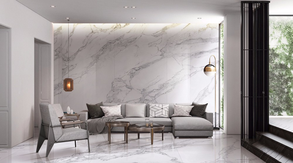 大規格瓷磚(5-JH241206)-工程瓷磚 金曼古大規格瓷磚引進世界最先進的超大型壓機自動壓制而成,具有超大規格,超高硬度,超高致密度,超長時間煅燒,超低吸水率,超高光澤度。其磚面紋理流暢自然,效果逼真,適用于大型工程外墻干掛和酒店、商場、各辦公樓大堂等地面裝修