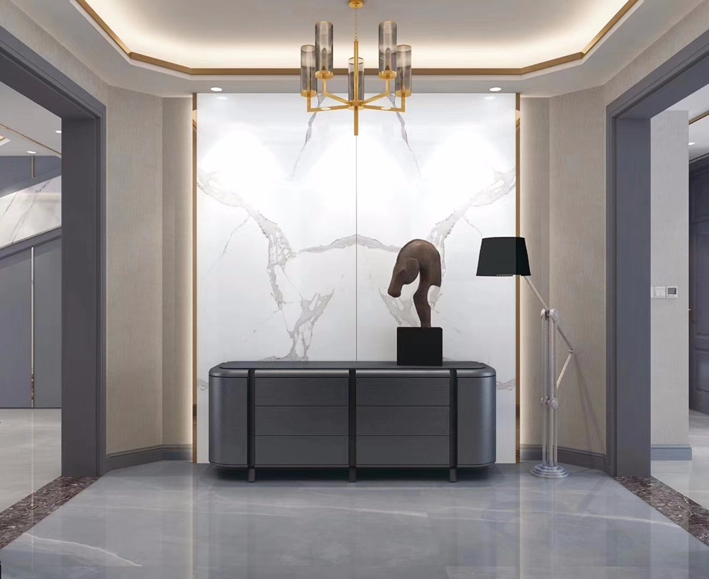 大規格瓷磚(5-JH241209)-工程瓷磚 金曼古大規格瓷磚引進世界最先進的超大型壓機自動壓制而成,具有超大規格,超高硬度,超高致密度,超長時間煅燒,超低吸水率,超高光澤度。其磚面紋理流暢自然,效果逼真,適用于大型工程外墻干掛和酒店、商場、各辦公樓大堂等地面裝修