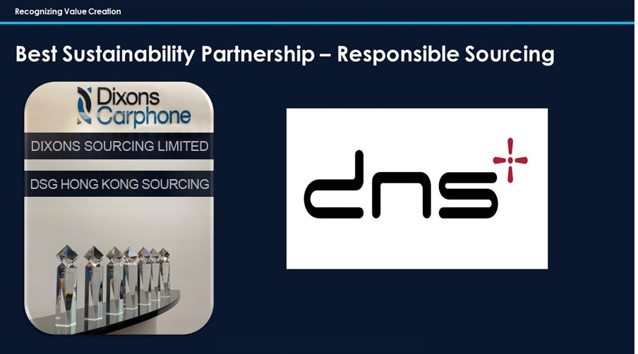 2021年7月,和宏榮獲了歐洲電器零售連鎖巨頭Dixons Carphone公司頒發的“最佳可持續合作伙伴獎-負責可靠供應商”獎項(Best Sustainability Partnership - Responsible Sourcing),是所有獲獎供應商中唯一的配件類供應商,這也是公司繼榮獲Dixons Carphone Group頒發的“最佳新供應商”、“最佳新產品開發”、“最佳質量控制”、“最佳交付”、“最佳商業合作伙伴”后獲得的第6個獎項。